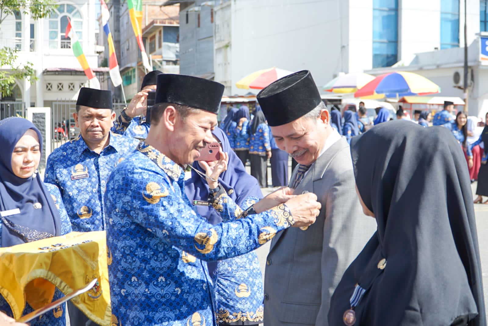 Usai pelaksanaan upacara, kemudian dilanjutkan dengan penyematan lencana Satya lencana karya satya 20 tahun, 10 tahun, penyerahan sertifikat Guru Penggerak serta penyerahan penghargaan dan bingkisan Guru pensiun dan diakhiri dengan pemotongan tumpeng oleh Bupati Rohil bersama Forkopimda.