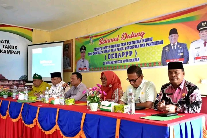 XIII Koto Kampar, Suaralangitnews – Menindak lanjuti kegiatan serasehan Giat Desa menuju Desa Ekowisata Ramah Anak Peduli Perempuan dan Pendidikan (DERAPPP), Melaksanakan Rapat koordinasi dalam mempercepat Pencapaian Sustainable Development Goals (SDGs) Desa, di aula kecamatan XIII Koto kampar, Jum’at (20/01/2023) pagi