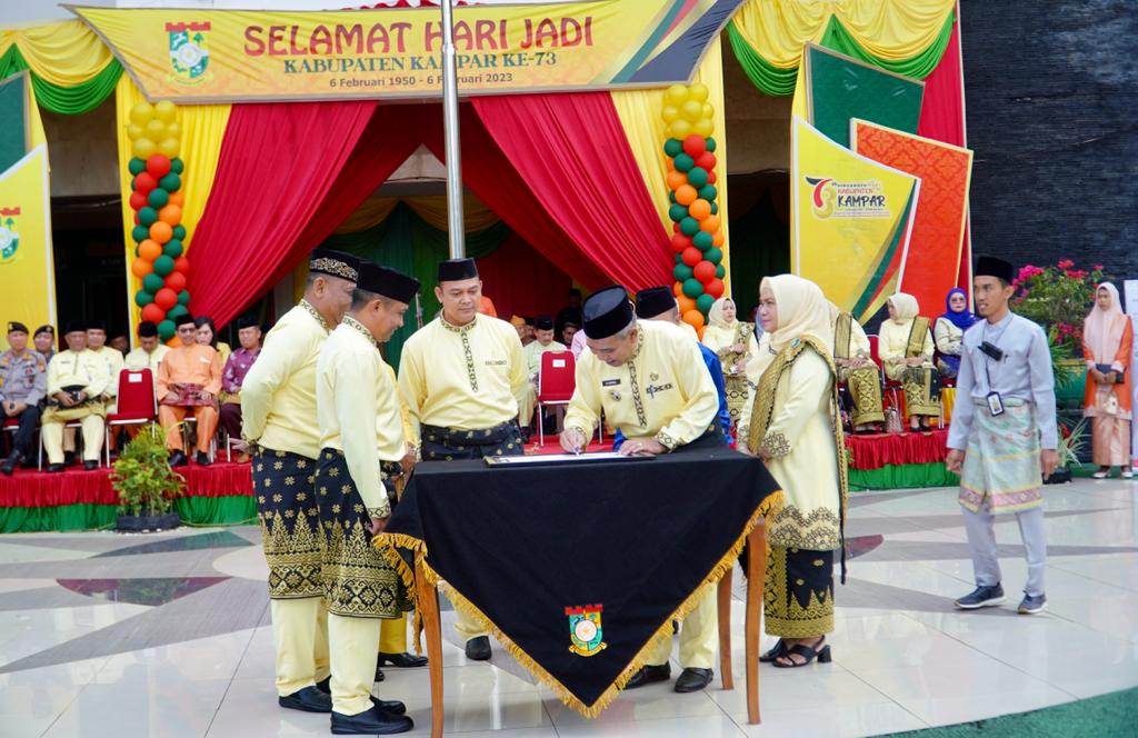 Bangkinang Kota, Suaralangitnews – Bersempena Upacara puncak Peringatan Hari Jadi Kabupaten Kampar ke-73 tahun 2023, Pj Bupati Kampar Dr H Kamsol,MM melaunching Gerakan Peduli Tetangga Pengentasan Kemiskinan Ekstrem dan Stunting di Kabupaten Kampar, Upacara Peringatan Hari Jadi Kabupaten Kampar Ke-73 Tahun 2023 diadakan di lapangan upacara Kantor Bupati Kampar di Bangkinang. Senin, (6/2/2023).