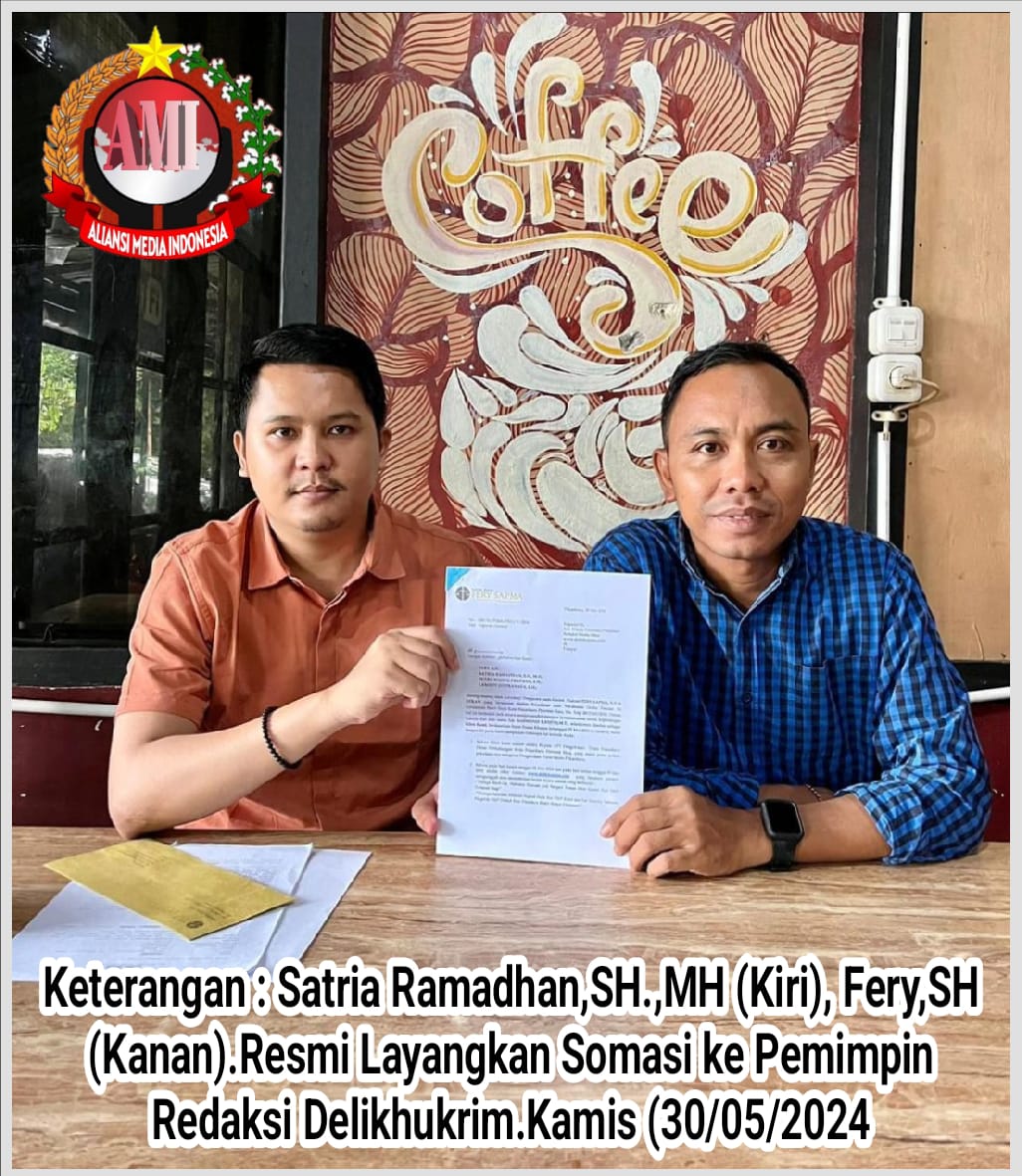 Melalui Kantor Hukum Fery Sapma layangkan Somasi (Teguran), yang ditujukan kepada Sdr Windy Priyanto selaku Pemimpin Redaksi media siber www.delikhukrim.com dengan nomor surat : 028/S1/FS&R/PKU/V/2024 tertanggal 28 Mei 2024.