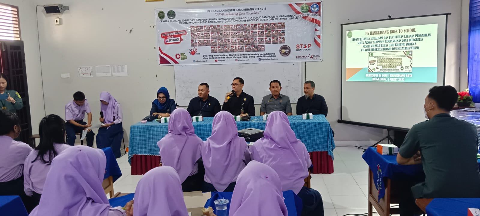 Oleh karena itu, kita sengaja melaksanakan kegiatan goes to school ini dalam rangka public Campaign atau mengkampanyekan bahwa kami Pengadilan Negeri Bangkinang Kelas IB, siap membangun Zona Intergritas.