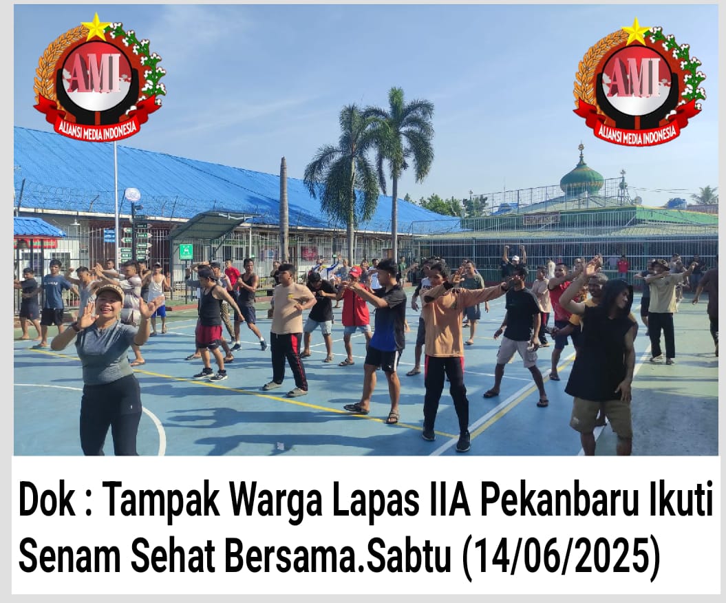 Suaralangitnews.com – Olahraga merupakan suatu kegiatan yang dapat meningkatkan kesehatan tubuh manusia. Oleh sebab itu warga binaan Lembaga Pemasyarakatan (Lapas) Kelas IIA Pekanbaru mengikuti kegiatan olah raga senam yang diadakan di halaman olah raga Lapas mulai pukul 08.00 wib sampai dengan selesai, Sabtu (14/06/2025).