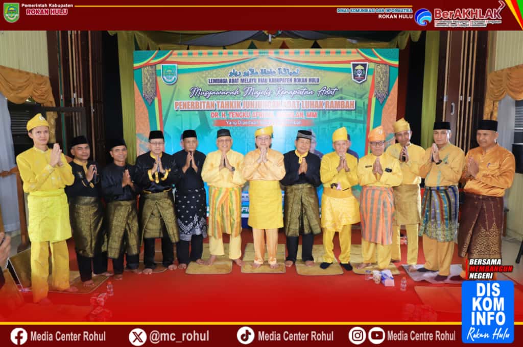 Suaralangitnews.com – Lembaga Adat Melayu Riau (LAMR) Rokan Hulu (Rohul) dalam Musyawarah Majelis Kerapatan Adat laksanakan kegiatan penerbitan Tahkik Junjungan Adat Luhak Rambah Raja Luhak Rambah Gelar Yang Dipertuan Besar dr. H. Tengku Afrizal Dachlan, M.M, Gedung Balai Adat LAMR Rohul, Sabtu (04/10/2025).