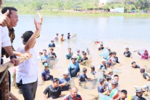 Kampa, Suaralangitnews – Pj Bupati Kampar Dr. H. Kamsol, MM menghadiri kegiatan Ma’awuo basamo sekaligus melepas Ikan Doorprize di Lubuk Larangan Sembat Desa Kampar, Kecamatan Kampa, Sabtu (7/1/2023).