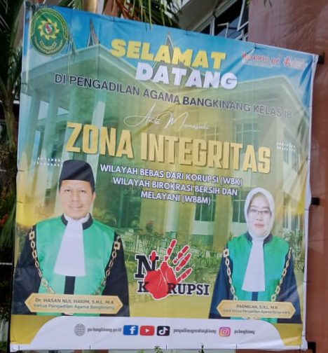 Spanduk tersebut berisi pesan penyambutan dan ajakan untuk bersama-sama membangun integritas, sekaligus meneguhkan langkah PA Bangkinang dalam meraih predikat Wilayah Bebas dari Korupsi (WBK) dan Wilayah Birokrasi Bersih dan Melayani (WBBM).