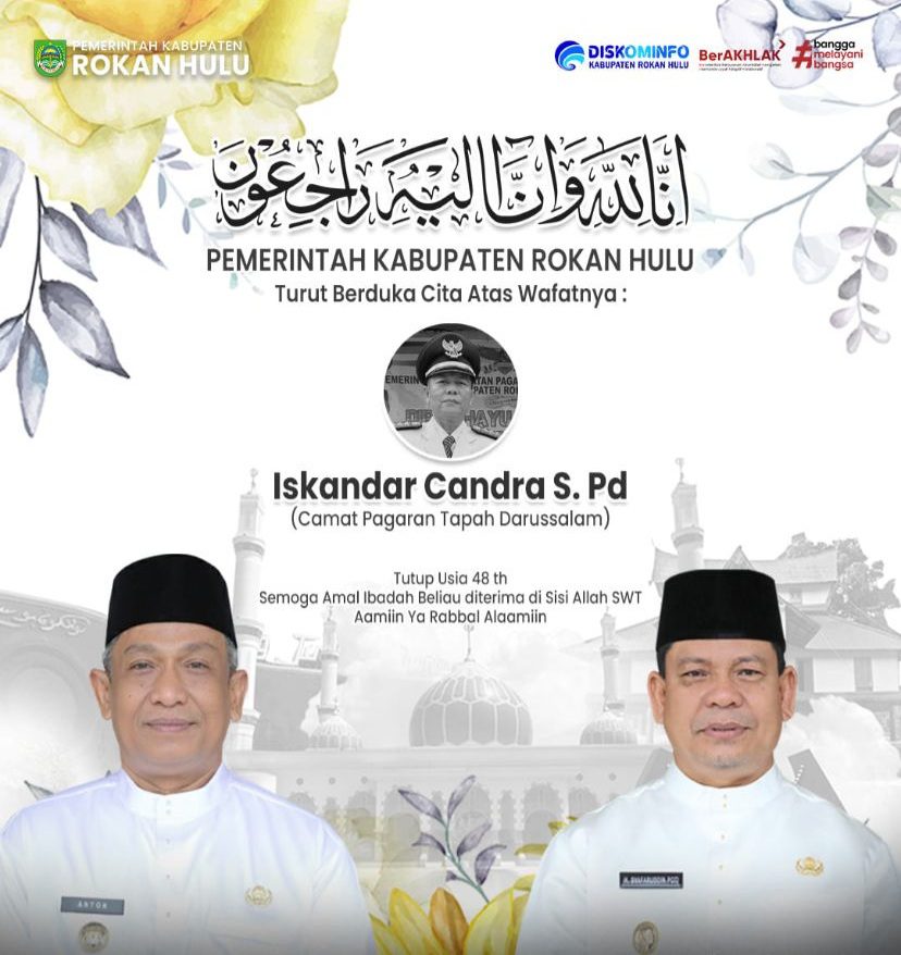 BerandaDaerahKab. Rokan HuluPemerintah Kabupaten Rokan Hulu Mengucapkan Turut Berduka Cita atas Wafatnya Camat Pagaran Tapah Darussalam : Iskandar Candra, S. Pd