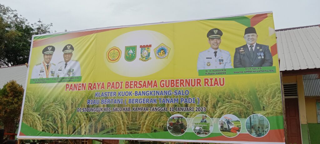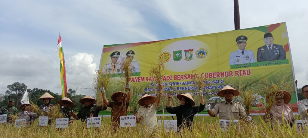 Bangkinang, Suaralangitnews – Panen raya padi Klaster Kuok – Bangkinang – Salo. Riau Bertani (Bergerak Tanam Padi), Dilaksanakan Kelompok Tani (Poktan) Boncah Piliang desa Sipungguk Kecamatan Salo, kabupaten kampar selasa (10/01/2023) pagi.