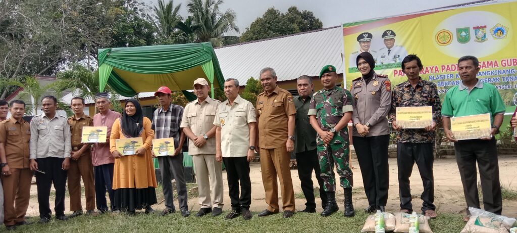 Sementara itu Gubernur Riau Syamsuar menyerahkan (al sintan) Pengunaan alat dan mesin pertanian bersama PJ Bupati kampar untuk kelompok tani (Poktan).