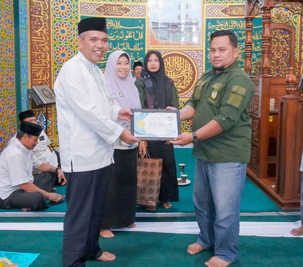Usai memberikan arahan Komunitas Peduli Bangsa Provinsi Riau memberikan sebuah sertifikat penghargaan kepada Pj Bupati Kampar sebagai apresiasi dari Program Gerakan Peduli Tetangga.