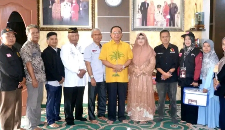 INHIL, Suaralangitnews – Bupati Indragiri Hilir H. M. Wardan bersama Hj. Zulaikhah Wardan menerima kunjungan panitia pemutakhiran data pemilih (Pantarlih) untuk pemilahan umum (Pemilu) tahun 2024 yang di dampingi Ketua KPU dan Bawaslu Kab. Inhil serta PPK dan PPS juga Camat Tembilahan di rumah dinas bupati Jl. Kesehatan no. 01 Tembilahan, Sabtu (18/02/2023).